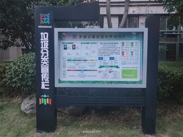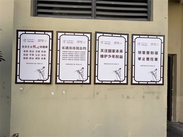 規(guī)格統(tǒng)一,色調(diào)一致,公益廣告干凈整潔,小區(qū)的文明程度,折射出我們城市的文明程度,人才大廈、天豪公寓的各個(gè)角落充滿著“公益宣傳好”的影子。